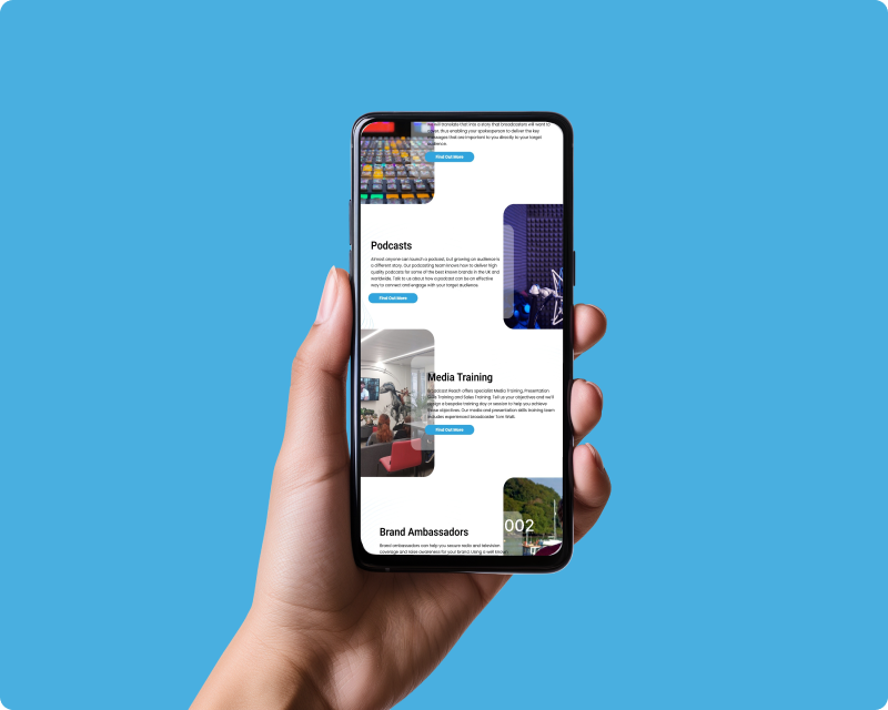 We delivered a fully bespoke WordPress website, providing four wireframes per primary page and incorporating unlimited client feedback until the designs completely aligned with Broadcast Reach’s requirements. The website was built to be fully responsive across all digital devices, ensuring optimal user experience regardless of platform.