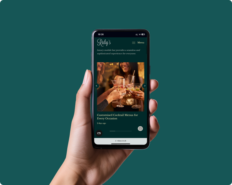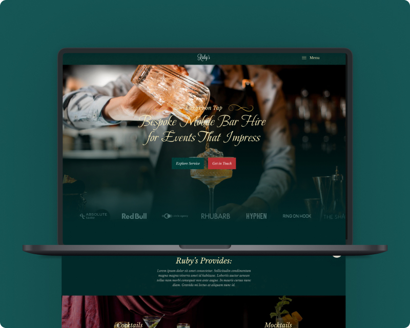 Ruby’s is a UK based luxury mobile bar hire company offering bespoke cocktail and mocktail services for weddings, corporate events, private parties, and festivals. Operating primarily out of London and servicing many UK regions, Ruby’s delivers high end, experiential beverage services through skilled mixologists and premium bar setups. Their original digital presence lacked clear brand clarity, modern visual hierarchy, and efficient user flows necessary for converting event inquiries.